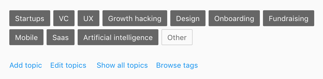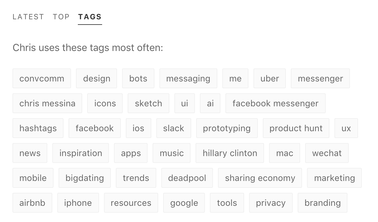 You have topics if you've saved more than 10 links and if they match with one of the existing topics. In a next step, you'll be able to remove topics and add new ones. Also, since your profile is public, you can share a link to your profile or directly to any topic page with everyone (example: https://refind.com/chrismessina/topics/bots), even people who are not on Refind yet.