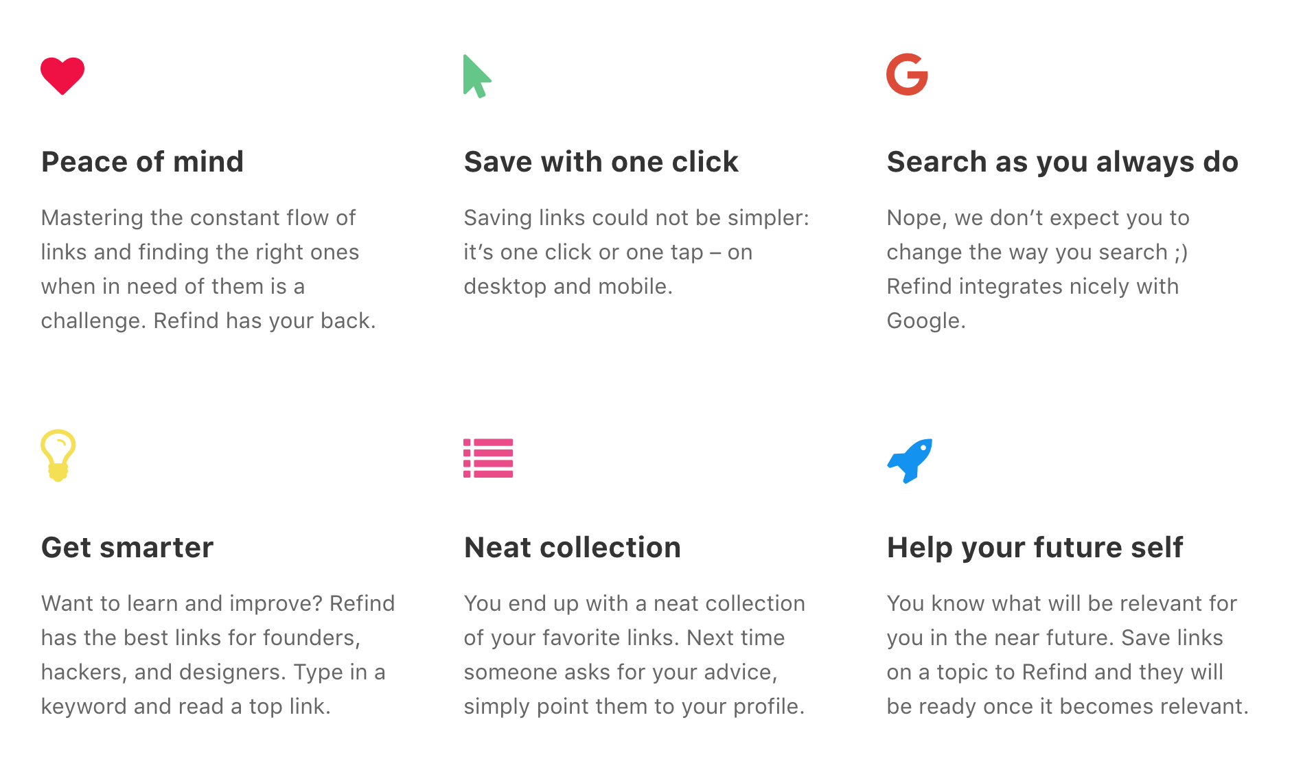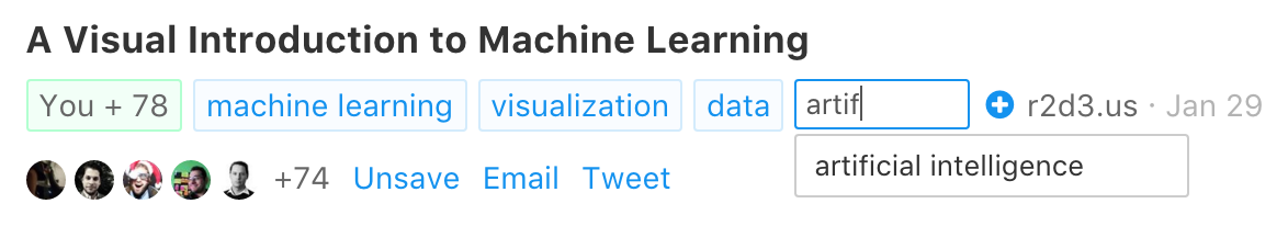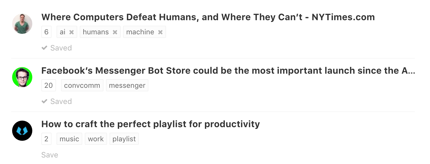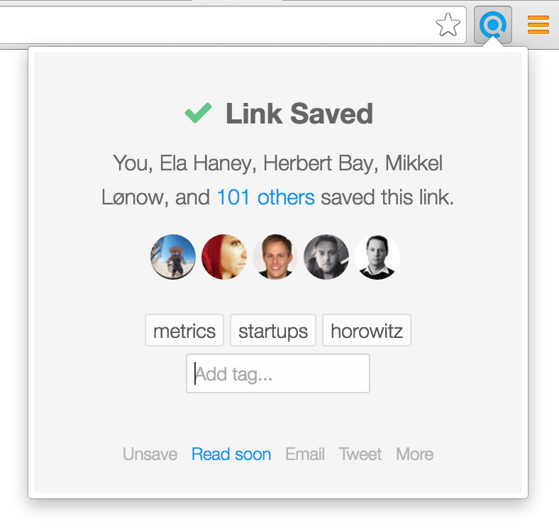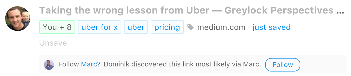 We strive for simplicity, so one-click saving and simple tagging are key. We don't believe in the traditional way of filing links into folders, yet we always wanted to have an organized link collection. This is why we're working on smart topics and we've just released the first step.