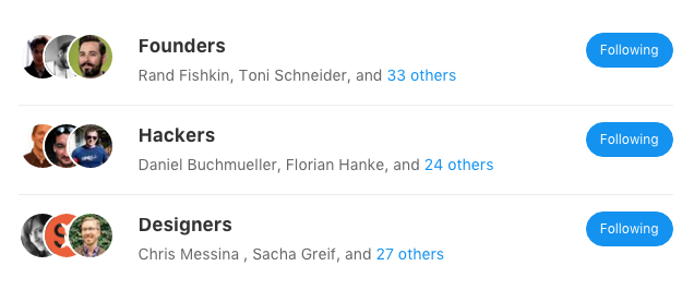 We've put together lists of great people to follow. Follow Chris Messina, Dan Ariely, Rodrigo A. Sepúlveda Schulz, Tariq Krim, Andreas Ehn, Daniel Buchmueller, Severin Hacker, Florian Hanke, Myke Naef, Toni Schneider, Mike Butcher, Johannes Reck, and many others...