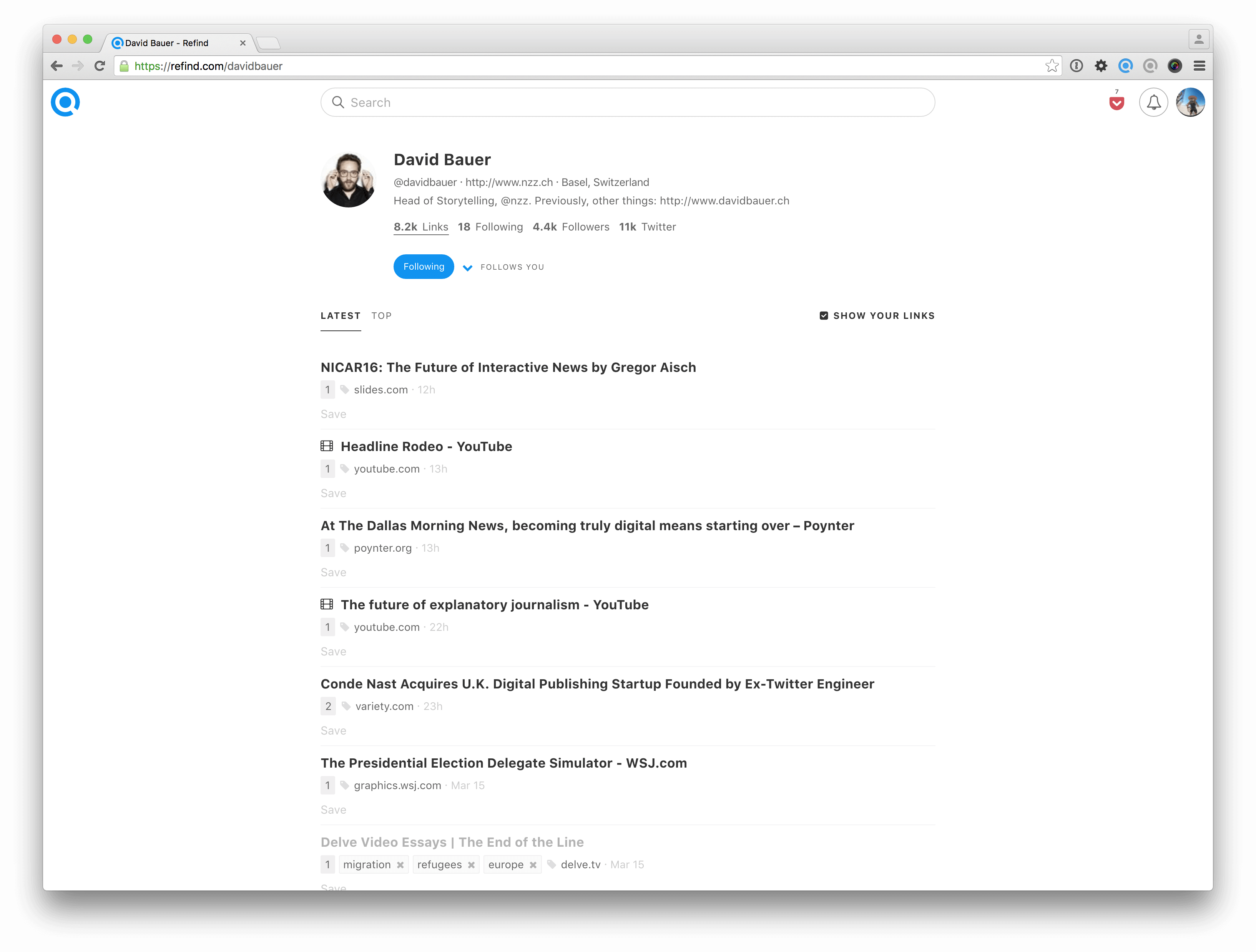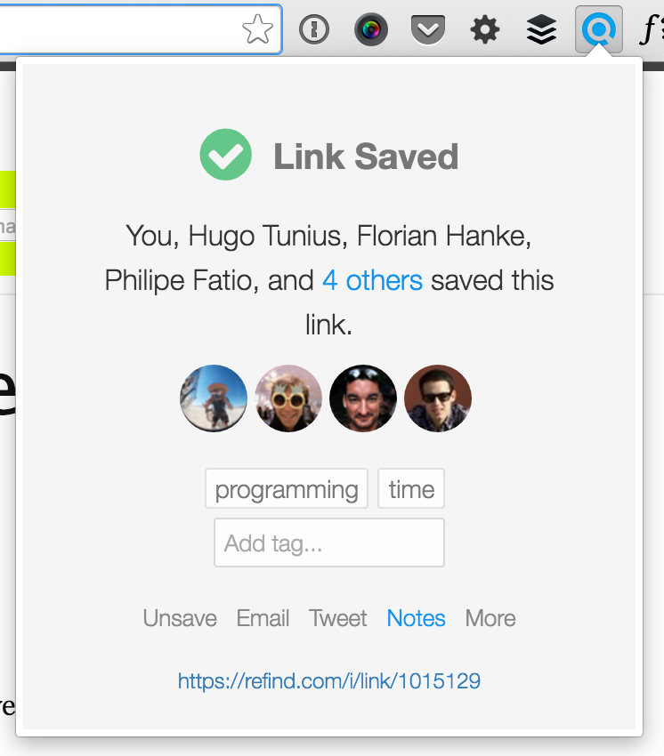 Now you can show your profile to everyone – Refind user or not. For example, add the link to your profile in your Twitter bio or your homepage, or simply send it to the next person who asks about your best links on topic X (a very common use case, as it seems!).