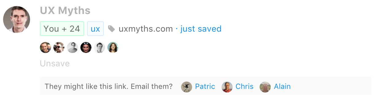 Similarly, from time to time you might now see a suggestion for whom to share a link after just saving it.